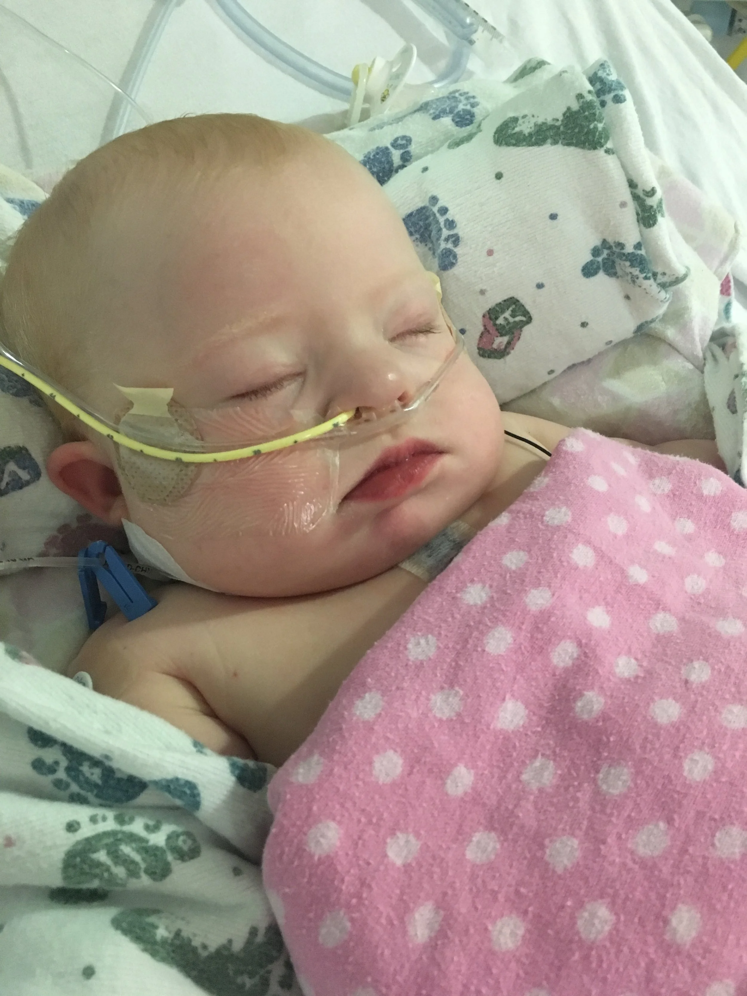 Let me explain. Lydia had multiple repairs made, but there were some structural complications we didn’t know about (even with 5 million echos) that the surgeon found when he got in there. So he had to improvise a little. Thankfully we have an AMAZING surgeon with tons of experience. He was able to make the repairs, but Lydia is now in what is called “heart block.” Her chambers aren’t talking to each other, so her heart is not beating in a coordinated way. This could be because her heart is stunned or swollen or damaged from all the work done. This may or may not improve. The surgeon was really surprised because he thought he had missed areas that would cause this, but again, she’s a complicated case. SO. We have one week, which is how long it takes for most heart block cases that are going to self-correct to do so. And many do. If it does not heal and start beating in sync, in one week they will go back in and place a pacemaker. Which yes, means another surgery through the same incision.