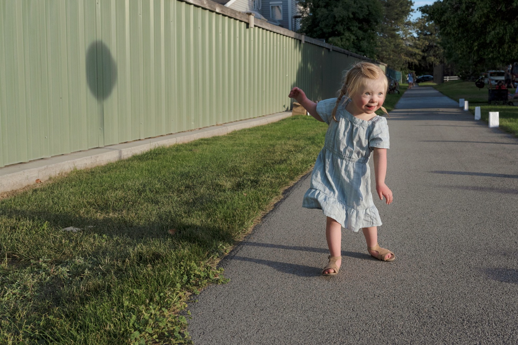 One year. She’s been walking for one year. I was surprised when a Facebook memory popped up and all the emotions hit me. I’ve been marking her progress these last few months—when we got back outside in the spring after the snow melted I immediately marveled at how much farther she could walk around the neighborhood; how much steadier her ankles were on uneven grass. Our jaunts out in nature ended in laughter instead of frustrated tears. She ran around public playgrounds anxious to participate instead of plopping down in the wood chips, content to watch. Baby girl, how far you’ve come!! Including a few of my favorite shots here from the journey, though I can’t include them all. The walker, the miles riding on Daddy’s shoulders, the bum scoot that got you where you needed to go 🥹 the propping you against walls until you could stand on your own, the ecstatic clapping when you did, the ankle braces, the teetering steps, watching you follow your sweet peers in adaptive PE & their exclamations of joy to see you… My heart explodes at it all. It is a joy to watch you grow, Lydie Girl, and to get to grow with you. Watch my stories to see how she’s learning to run. Don’t be deceived, in church last week she worked a hairpin turn & lost me in a crowd, giggling all the way, which earned a “She’s got moves!” from a laughing, seasoned mom. The fun has just begun. 😳😂💛 #misslydiefaith #theluckyfew
